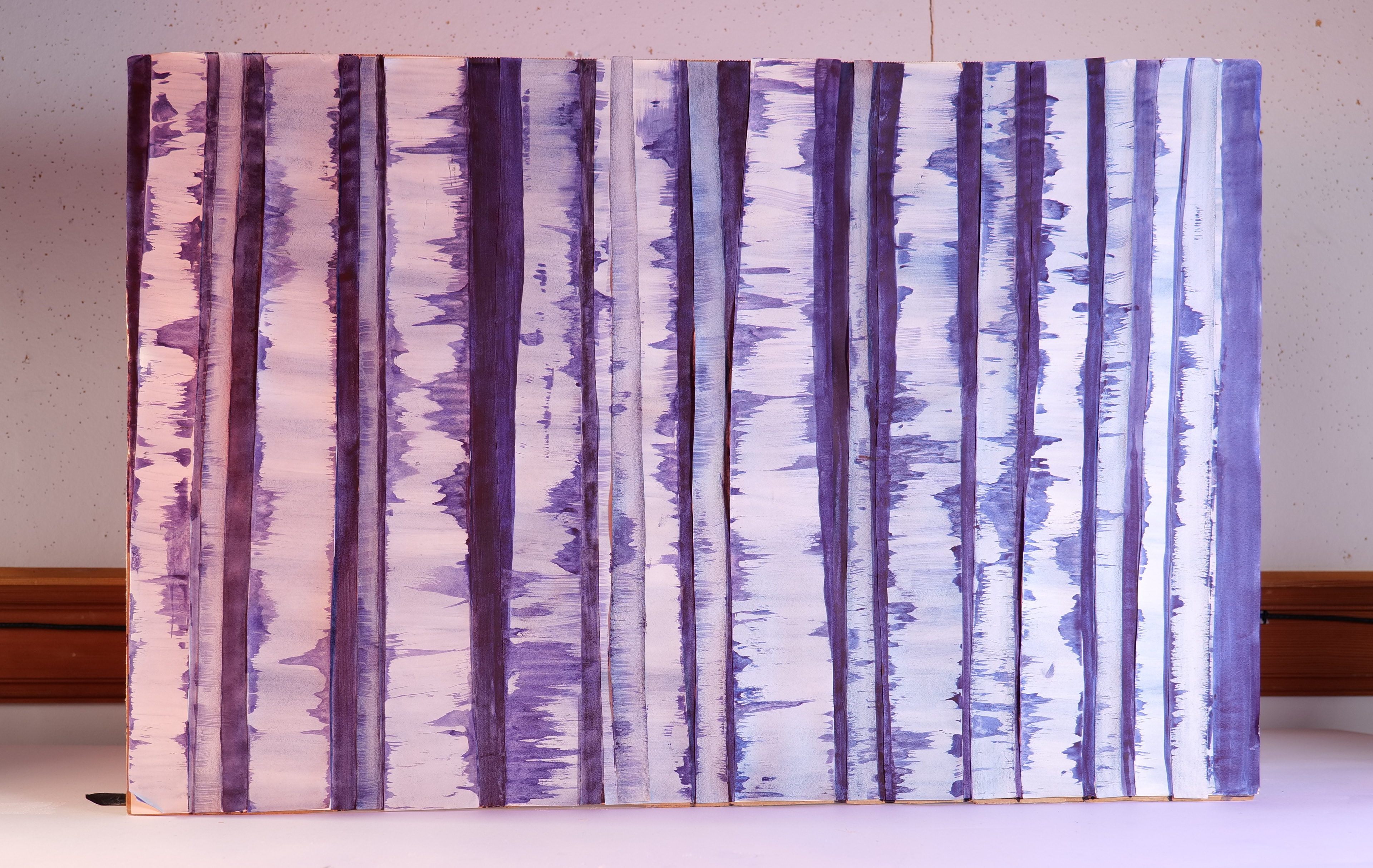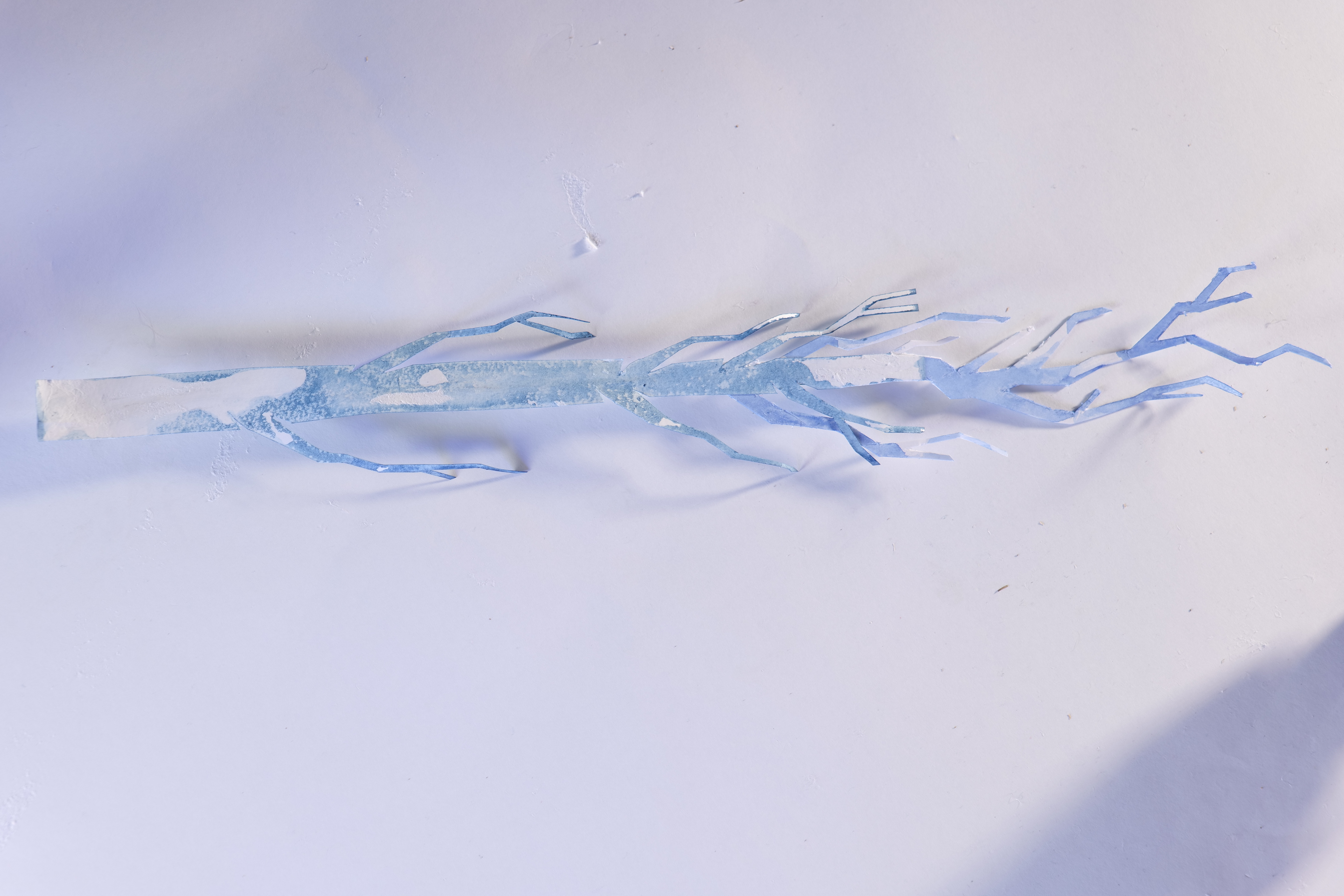 My individual roll was set designer. I hand crafted the set design with a cardboard base that was painted and collaged with watercolor and paper. The trees were structured with wire to stand up in order to function as moveable objects for different scenes. For the trees I made my own texture out of paint.