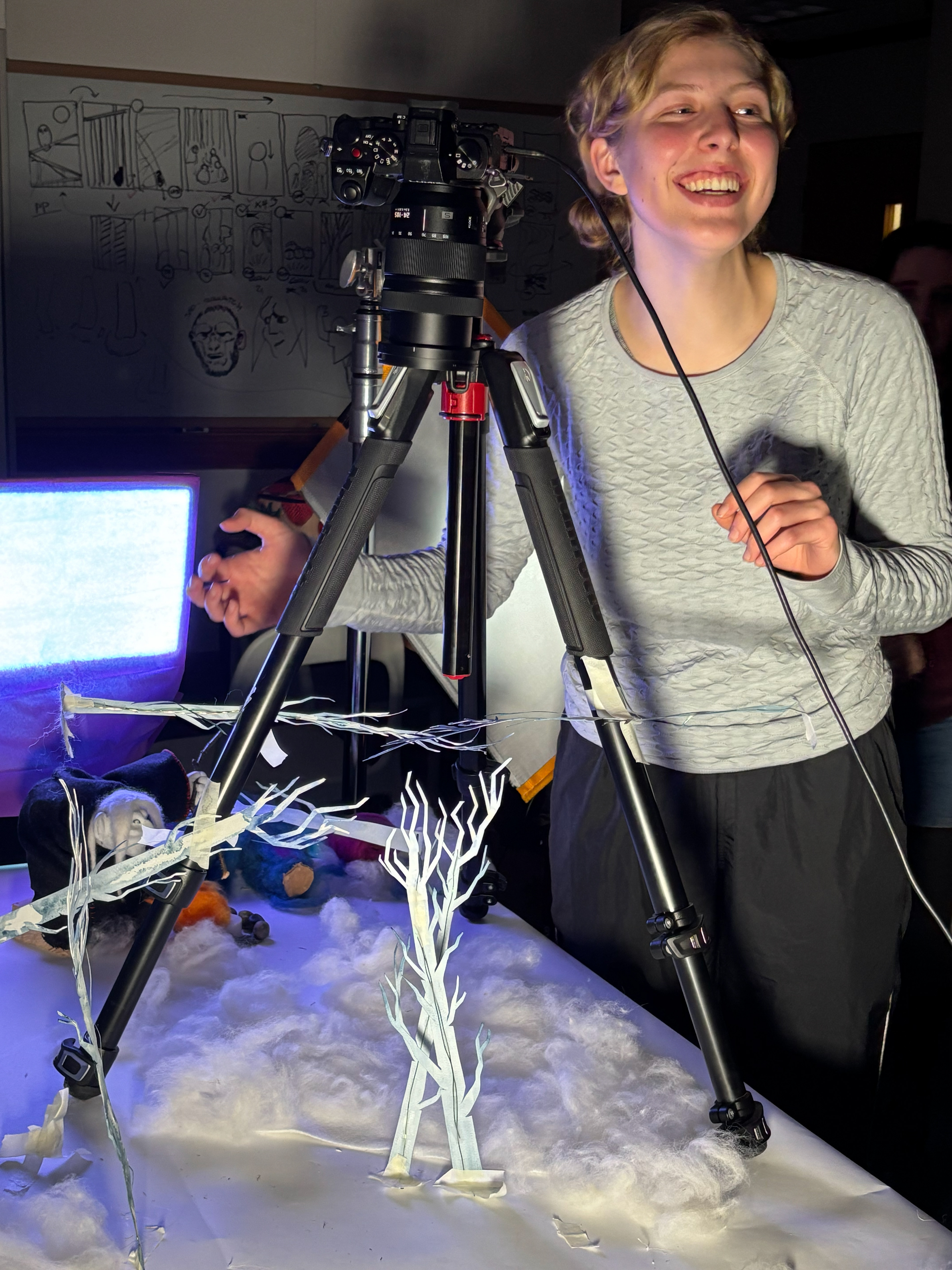 As a group of five, each one of us participated in each roll of the animation process from moving the characters to art directing our film shots.